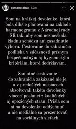 Romana Tabak v príbehoch na svojom Instagrame uviedla, že síce letela do Dubaja, no v Dubaji nie je.