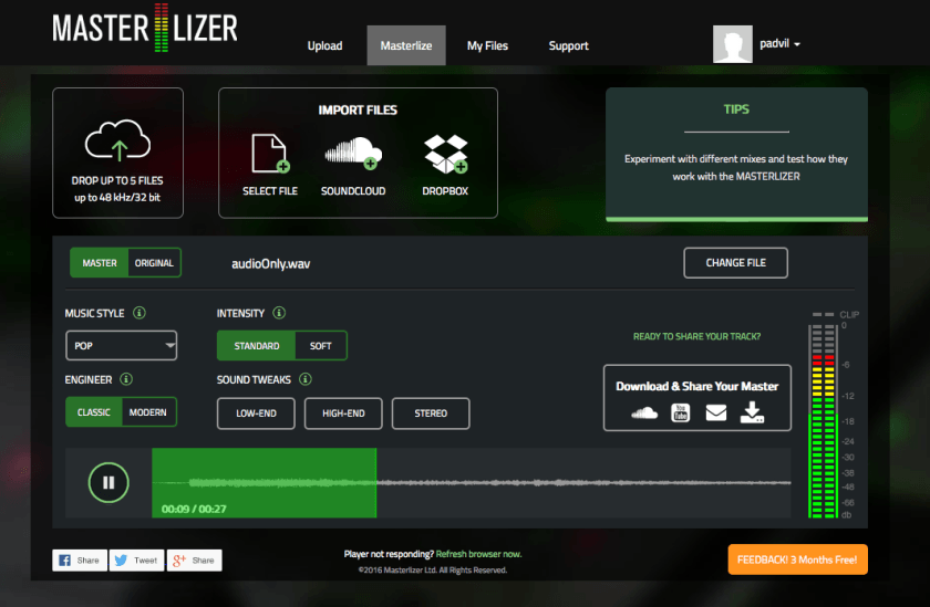Môžem povedať, že zatiaľ dostávame veľmi dobrý feedback a ľudia používajú Masterlizer od Aljašky cez Rio de Janeiro, Londýn, Paríž, Viedeň, Kuala Lumpur, Tokyo až po Sydney. Práve to je našou najväčšou motiváciou. Dúfam, že našim používateľom prinášame emocionálny moment, keď svoju hudbu prvýkrát počujú cez Masterlizer. Ak sa nám podarí aspoň toto, tak sme niečo ovplyvnili. Dnes už ľudia na masterlizer.com mastrujú celé svoje, predávajú ich online a píšu nám, ako sme im pomohli ich hudbu zdokonaliť. Sú to krásne momenty, ktoré nás veľmi tešia.