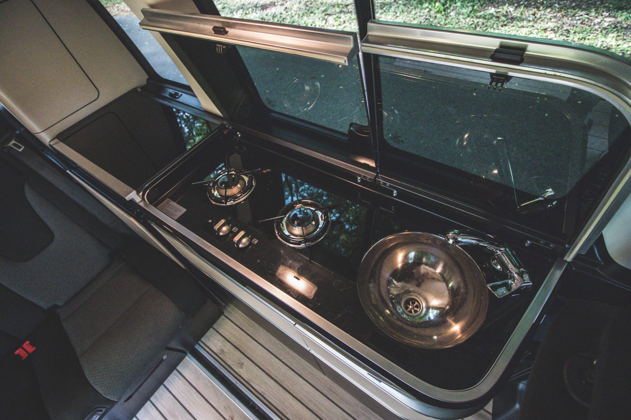 Zrazu máte pred sebou malú kuchynku, kde nechýba umývadlo, plynový horák, krásne LED podsvietenie alebo malá chladnička. Po pár minútach už viem, kde sa pustí plyn, ako sa obsluhuje sprcha (áno, je tu aj táto možnosť) a ako si urobiť spanie na streche. Už v tej chvíli nevieš, kam by si s autom išiel radšej. Či niekam k moru alebo kempovať do Tatier. Urobiť si výlet ťa láka pri každom naštartovaní.