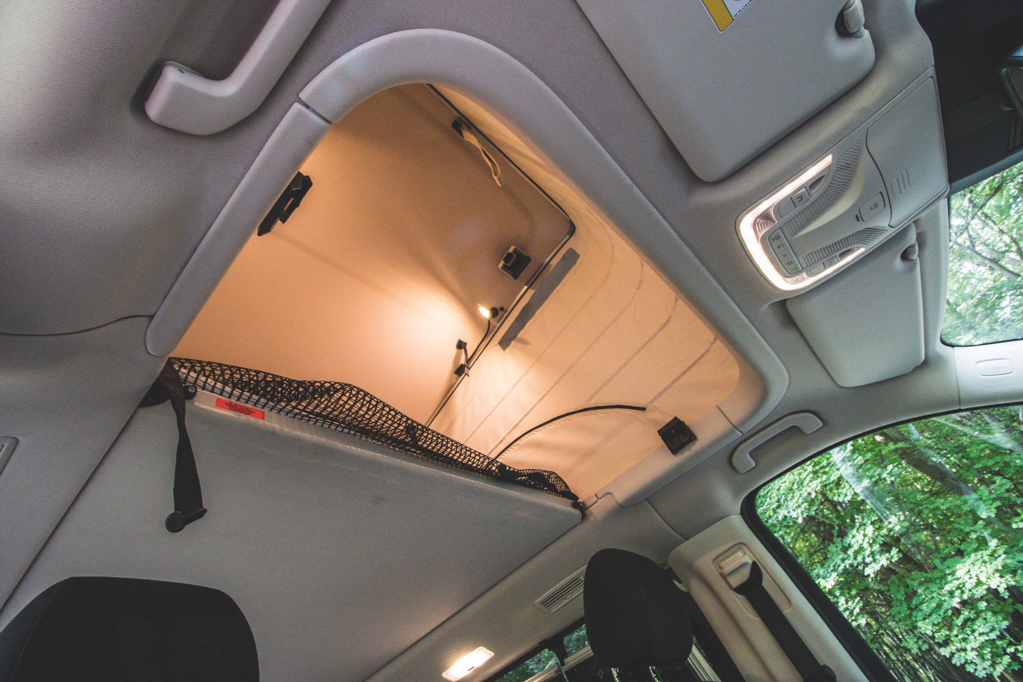 Sedadlá vodiča a spolujazdca si dokonca môžeš (po zaparkovaní) otočiť smerom do auta. Do minúty si vieš zdvihnúť strechu, ktorú môžeš dvojako využiť. Buď tak, že sa vieš v aute pohodlne postaviť a fungovať v kuchyni, večer zase vieš spustiť vo vnútri strop nižšie, kvôli vytvoreniu lôžka pre dvoch. Akoby si spal na streche.
