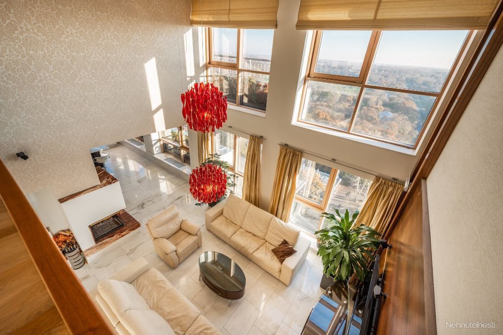 Byt obsahuje 2 terasy, 1 balkón, 2 kúpeľne a 3 toalety, šatník a technickú miestnosť. Nový majiteľ sa môže tešiť aj na stropy vysoké 5,5 metra a dennú dávku svetla, krb obložený onyxom, fínsku a parnú saunu, klimatizáciu, mramorové a drevené podlahy a luxusný značkový taliansky nábytok.