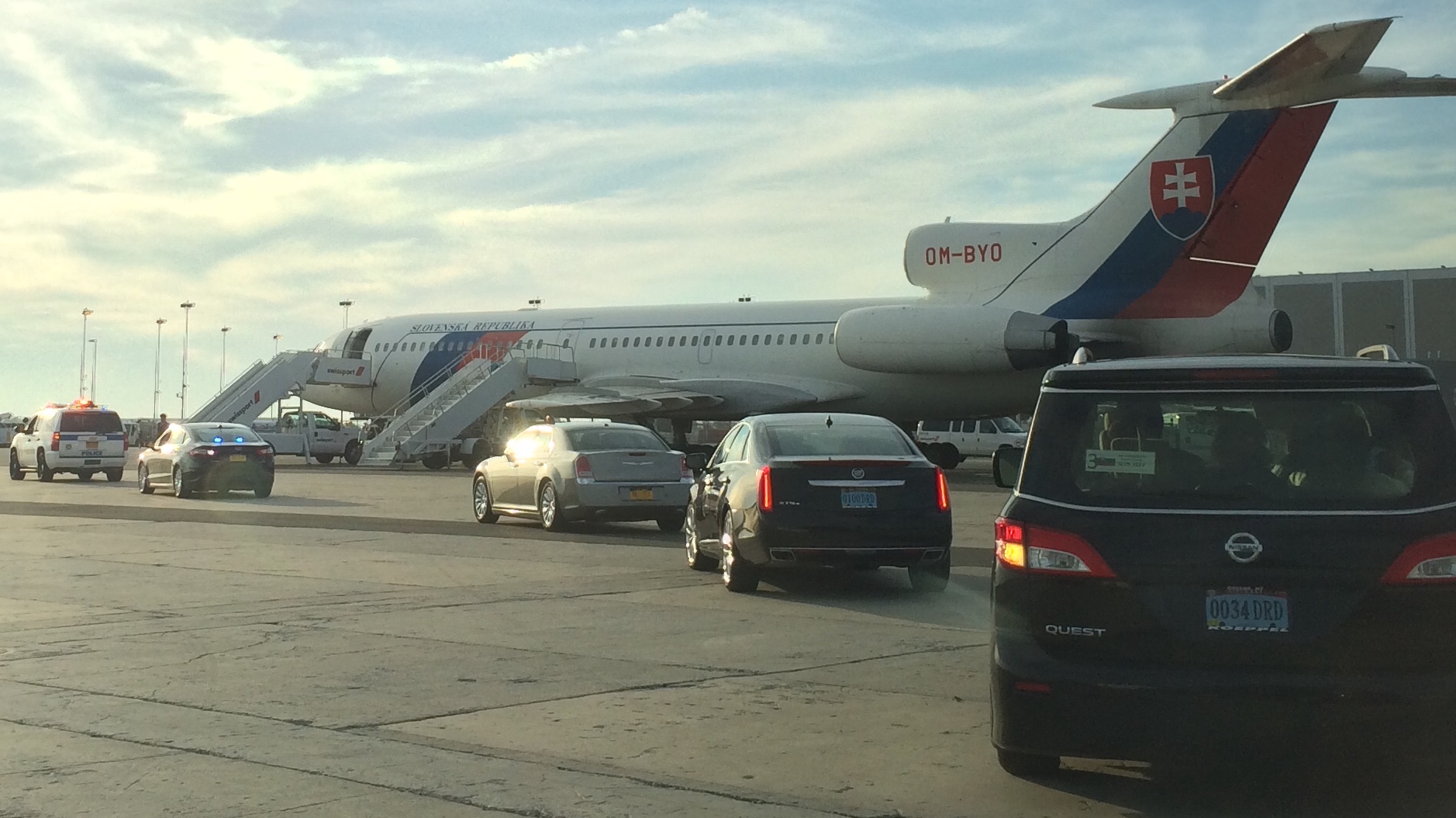 Takto vyzerá príchod kolóny priamo k prezidentskému špeciálu.