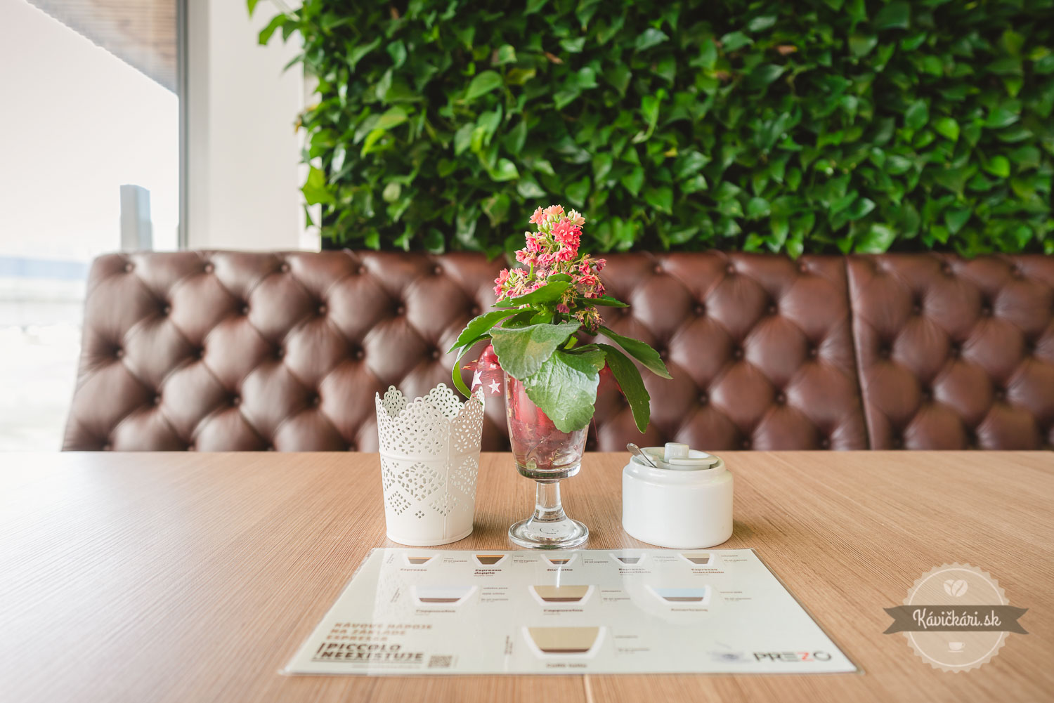 Kávičkári si tu vychutnajú kávu talianskej značky Caffè Diemme od distribútora Vladimíra Koča. Dokonalá a odborná príprava doplnená o pekné servírovanie – sú tu samozrejmosťou. Ku skvelej káve patrí lahodný koláčik. V ponuke nájdete domáce cheesecaky, ktorých výber je naozaj pestrý.