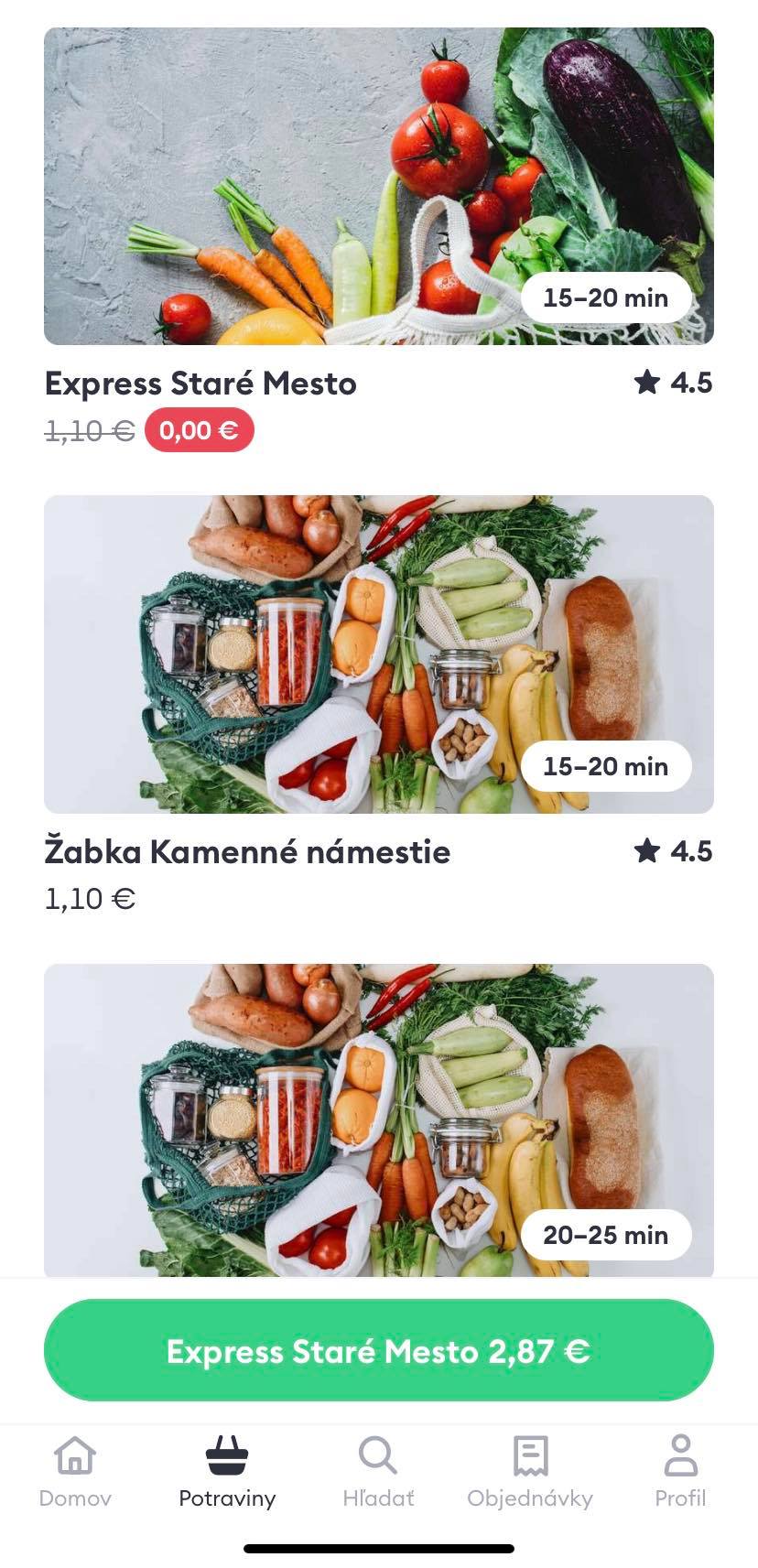 V aplikácii Bolt Food si stačí zo zoznamu vybrať obchod, ktorý sa k tvojmu bydlisku nachádza najbližšie, následne ti bude možné tovar doručiť aj za štvrť hodinku.