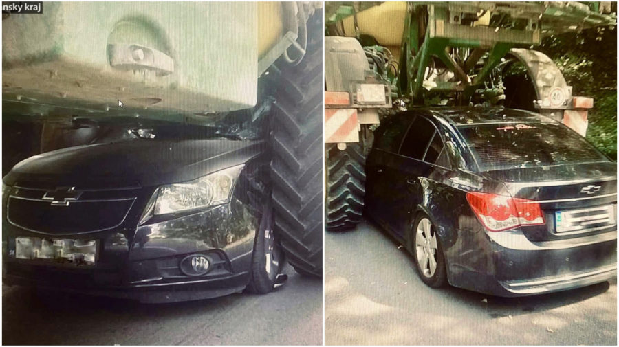 MISSION IMPOSSIBLE po slovensky, píše polícia: Auto sa zakliesnilo v obrovskom pracovnom stroji s vysokými kolesami
