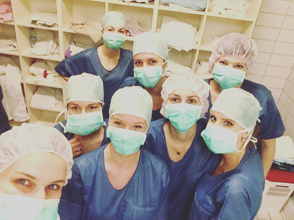 No a potom napríklad letná prax – pre mňa teda hlavne chirurgia, kedy som mohla na operačné sály a dokonca asistovať, absolvovala som výbornú stáž z chirurgie na Klinike onkologickej chirurgie v Národnom onkologickom ústave v Bratislave – prvýkrát som brala pacientovi krv, absolvovala vizitu či zavádzala permanentný močový katéter pacientke.