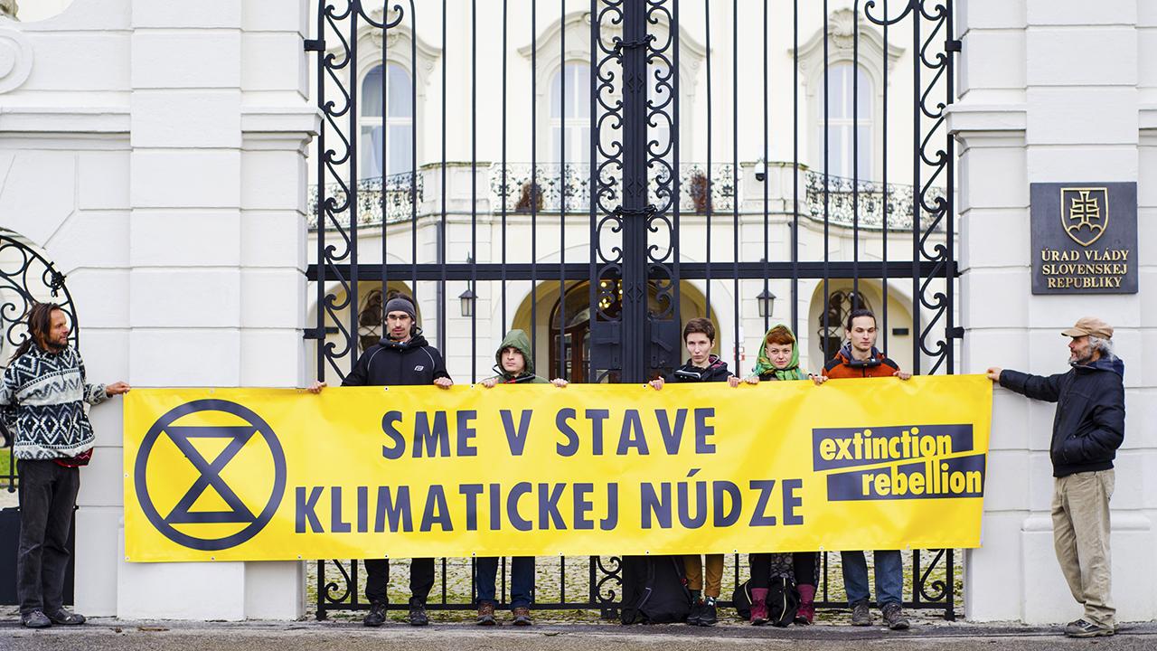 • Členovia hnutia Extinction Rebellion Slovakia sa zamkli o Úrad vlády SR, aby upozornili na naliehavosť klimatickej krízy