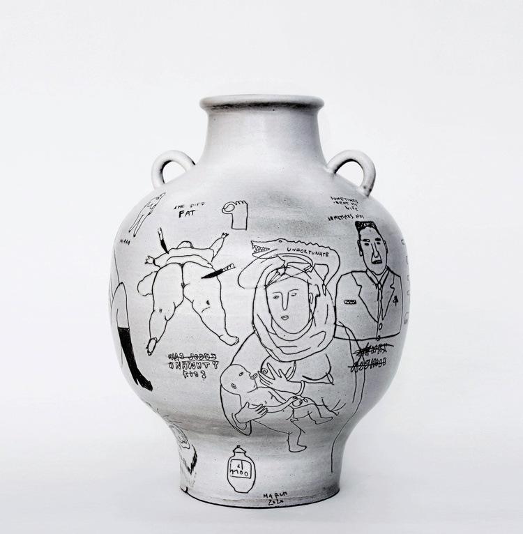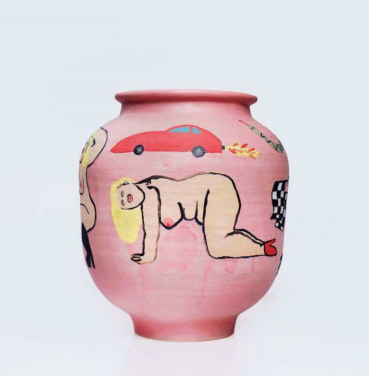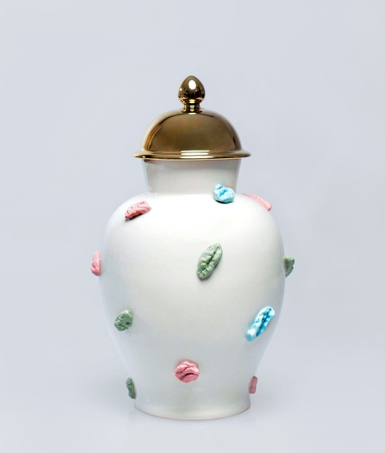 Zuzana Svatík svoje vázy zase pokrýva nápismi, vymodelovanými žuvačkami či tvarom srdca. Jej vyobrazenia „mužnosti“ na keramike sú postavené na stereotypoch, ktoré vedome zveličuje.