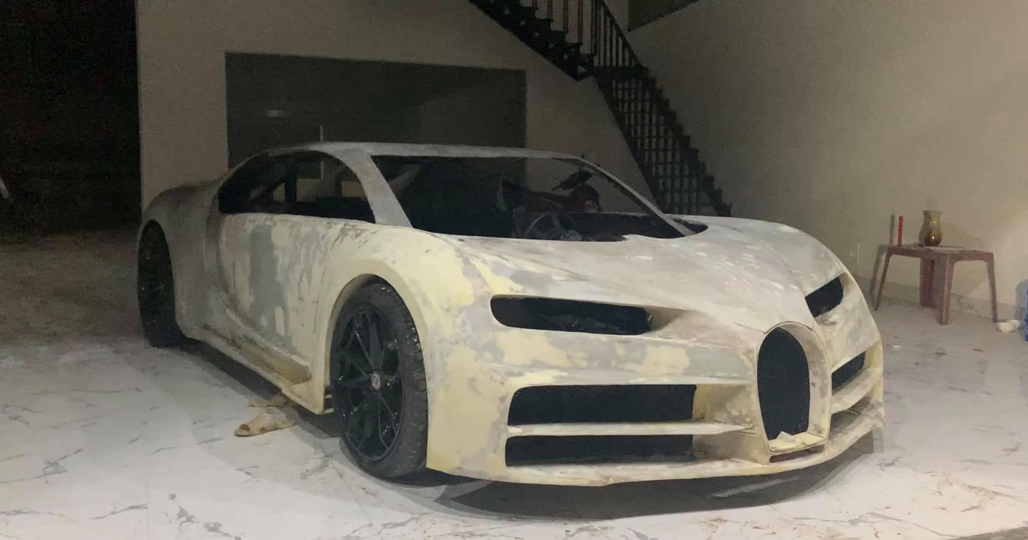 Väčšina dielov vznikla pod rukami zručného youtubera, ktorému ako motor poslúžil štvorvalec od Toyoty. Auto je kompletne funkčné a dokonca je nalakované vo farbe baby blue, aká bola použitá na vôbec prvom prezentovanom exemplári Chironu.