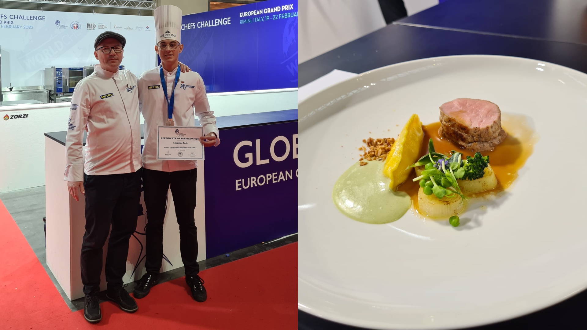 Čerstvý absolvent košickej hotelovej akadémie Sebastián Tóth uspel v silnej konkurencii 15 krajín Európy. Úlohou súťažiacich bolo pripraviť za 75 minút štyri porcie hlavného jedla s použitím povinnej suroviny, a to teľacieho chrbta.