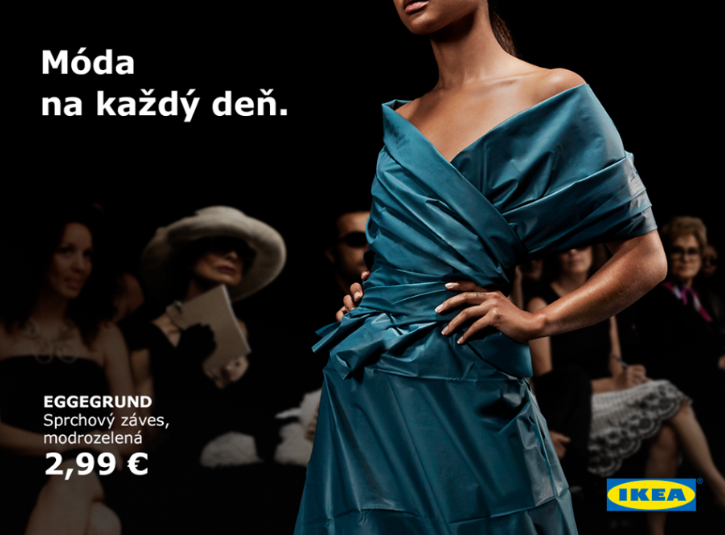 Reklamy na podobnom princípe dlhodobo ukazuje na Slovensku aj reťazec Ikea. Naposledy skvele spropagovala sprchový záves, z ktorého urobila šaty a vo svojom príspevku upozornila na podujatie Fashion LIVE!. Viac čítaj TU!