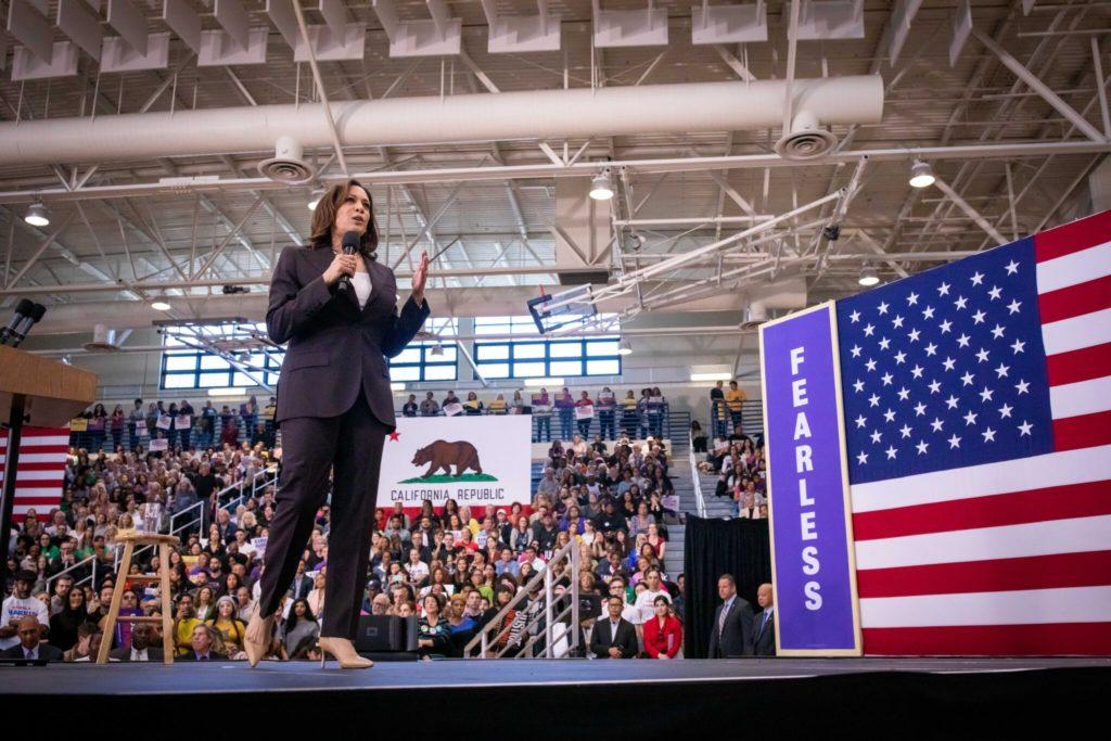 „V Kalifornii bolo malé dievčatko, ktoré bolo súčasťou druhej triedy, aby sa podieľalo na integrovaní verejnej školy, a do školy ju každý deň vozili autobusom. A to dievčatko som bola ja,“ povedala Harris Bidenovi počas primárok, keď kritizovala Bidenovu politiku segregácie. Neskôr sa z boja o demokratickú nomináciu pre nedostatok financií stiahla a podporila práve Bidena. Už vtedy sa hovorilo, že by mohla byť jeho prípadná VP alebo aspoň ministerka spravodlivosti.