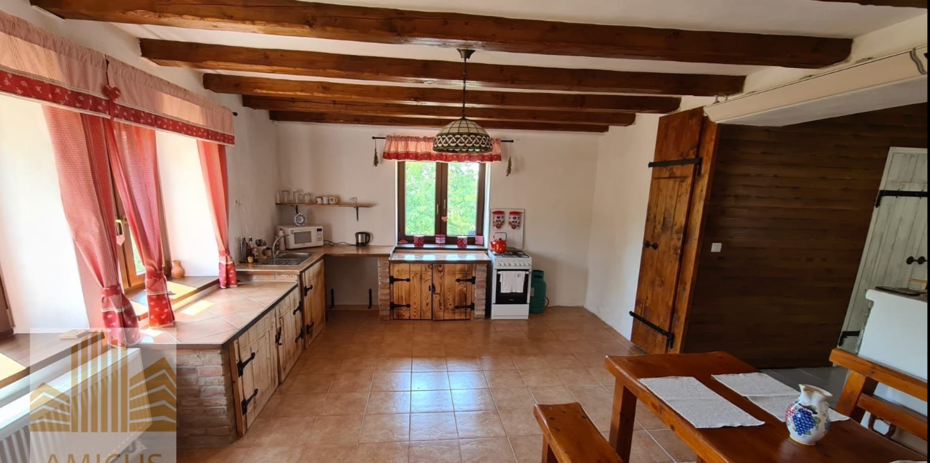 „Chata má rozlohu necelých 100 m2, úžitková plocha je necelých 200 m2. Dispozične pozostáva z prízemného a jedného nadzemného podlažia. Na prízemí sa nachádza vstupná miestnosť so schodiskom a krbom, obývačka, kúpeľňa s wc a kuchyňa. Na poschodí sa nachádza spálňa a priestranná voľná miestnosť s balkónom s krásnym výhľadom. Chalupa prešla kompletnou rekonštrukciou okolo roku 2015 (nový betónový veniec, strecha, omietky, odpady, voda, elektrika, podlahy, obklady, okná s izolačným trojsklom…), neskôr sa ešte dorábalo ústredné vykurovanie na tuhé palivo. Kúrenie zabezpečujú aj elektrické infračervené ohrievače na wifi. Chalupa je osadená na pozemku o veľkosti 935 m2,“ píše sa v inzeráte.