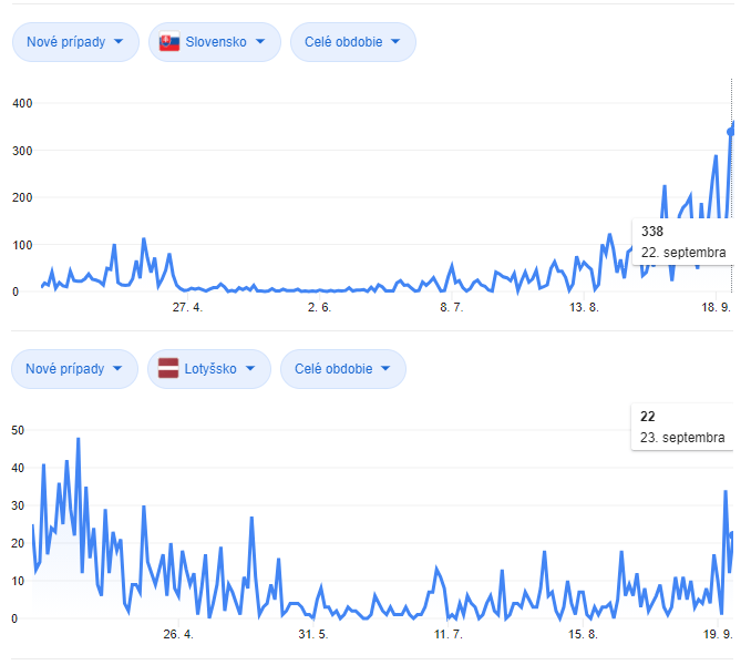 Aj keď sa zatiaľ čísla pohybujú od 10 do 30 ľudí denne, čo niekomu môže pripadať v porovnaní s inými krajinami naozaj málo, oproti letu, kedy tieto čísla boli v jednotkách, to pre Lotyšsko tiež znamená príchod druhej vlny. Celkovo má tak krajina zatiaľ potvrdených 1 654 prípadov Covid-19. Opäť raz pre porovnanie, u nás je číslo iba aktívnych prípadov vyše dvojnásobné a celkové číslo vyše 8 000 pozitívne testovaných.