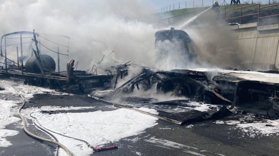 Na D1 pred tunelom Branisko horia nákladné autá. Úsek je uzatvorený, hlásia jedného zraneného