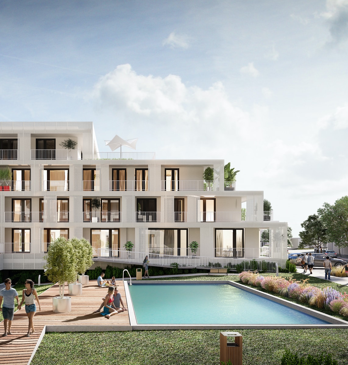 V celom projekte sa bude nachádzať 121 jeden až štvorizbových bytov a apartmánov rôznych veľkostí. Najmenšie byty budú mať rozlohu 34 štvorcových metrov a tie najväčšie až 91 štvorcových metrov. Každý z bytov bude disponovať buď balkónom, alebo terasou.
