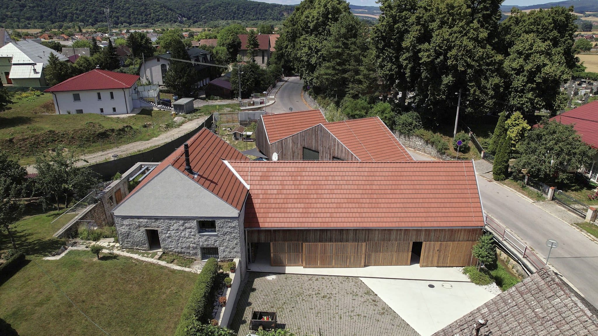 To, čo zostáva, preberá jazyk, ktorým obe generácie dokážu hovoriť. Nové objekty rešpektujú tie pôvodné v materiáloch aj vo formách, bez bázne voči dnešku a jeho potrebám. Nová stavba a jej tvár akoby v Opatovej nad kostolom boli odjakživa.
