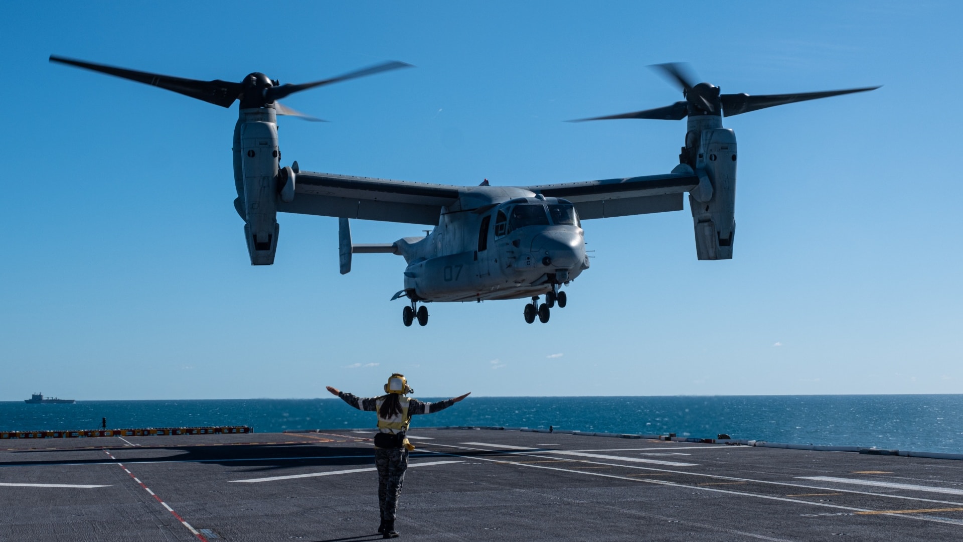 Na snímke je stroj Bell Boeing V-22 Osprey, ktorý používa americká armáda. Svojím dizajnom kombinuje vlastnosti vrtuľníka turbovrtuľové lietadlo. Vzlet aj pristátie je vertikálne, čím pripomína vrtuľníky.
