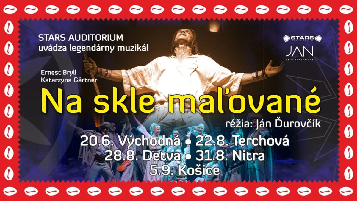 Muzikál Na skle maľované, ktorý patrí k najúspešnejším hudobno-divadelným titulom na Slovensku, opúšťa scénu bratislavského STARS auditoria a v letných mesiacoch zavíta pod holé nebo. Diváci sa môžu tešiť na výnimočnú atmosféru open-air predstavení v ikonických slovenských amfiteátroch, kde sa spojí energia divadla, hudby a prírody do jedinečného umeleckého zážitku.