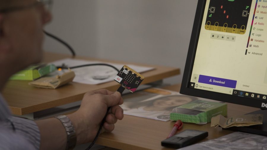 Saška Kremničanová, maturantka z Bratislavy, si svoju skúsenosť s micro:bitmi nevie vynachváliť. Keďže sa minulý rok zúčastnila celodenného svetielkujúceho workshopu Aj Ty v IT, ktorý využíval práve tie, na oficiálne otvorenie Akadémie programovania sa prišla s učiteľmi podeliť o svoje zážitky. “Je pre mňa úplne úchvatné spájať nové technológie s iným odvetvím. V rámci kurzu som si vytvorila originálnu svetielkujúcu tašku. Najviac ma bavilo programovanie sekvencií a pravidelnosti blikania, keďže to bolo kreatívne, logické a prekvapivo ľahké. Naopak, najťažšie bolo pre mňa samotné našívanie led-diodiek,” s úsmevom priznáva sympatická študentka.