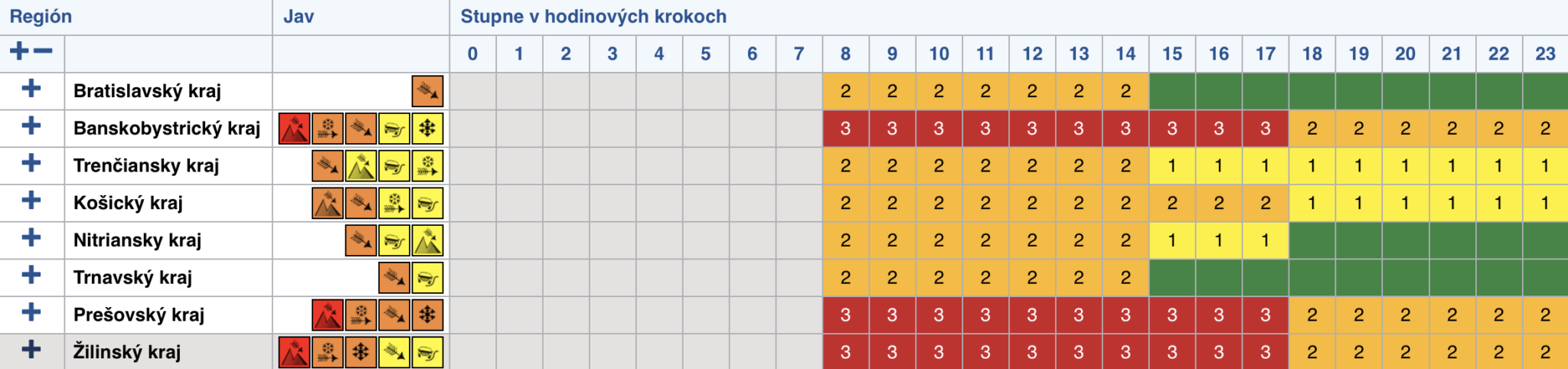 Správa a údržba ciest Prešovského samosprávneho kraja (PSK) dokonca predpokladá, že v neskorších poobedňajších hodinách bude nevyhnutné vyhlásenie až II. situačného stupňa.