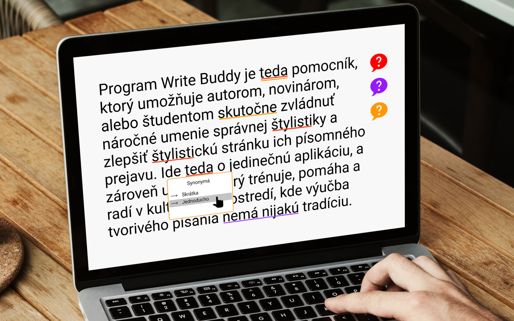Osobný editor a učiteľ písania Write Buddy ti však ušetrí nervy, drahý čas i cenné úspory. Tomáš sa preto rozhodol pomôcť všetkým autorom vytvorením editora, ktorý radí, upozorňuje, pomáha redukovať čas potrebný na prepisovanie a celkovo zvýši produktivitu a kvalitu výstupu.