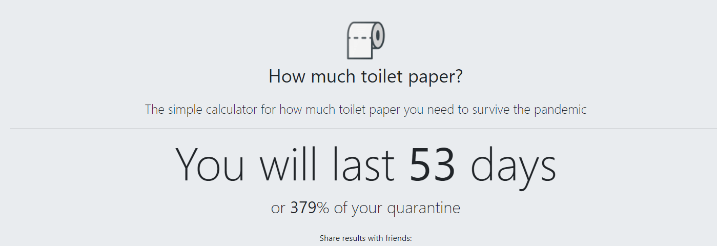 Londýnska dvojica Ben Sassoon a Sam Harris vytvorila online kalkulačku, ktorá človeku pomôže zistiť, na ako dlho mu vydržia zásoby toaletného papiera. Webstránku howmuchtoiletpaper.com spustili po tom, ako si ľudia v dôsledku obáv so šírenia nového koronavírusu začali robiť veľké zásoby toaletného papiera.
