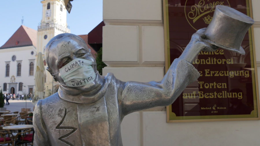 „Práve dnes sa na mnohých sochách v Bratislave objavili rúška, ktoré upozorňujú na klimatickú krízu ako na jeden z najzávažnejších a najkomplexnejších problémov súčasnosti. Mnohí politici a političky či ľudia, ktorí majú moc meniť veci, však klimatickým zmenám a hroziacemu environmentálnemu kolapsu nevenujú dostatočnú pozornosť. Považujeme preto za dôležité robiť všetko preto, aby sa zo záchrany klímy stala prvoradá politická priorita,“ píše skupina na svojej facebookovej stránke.