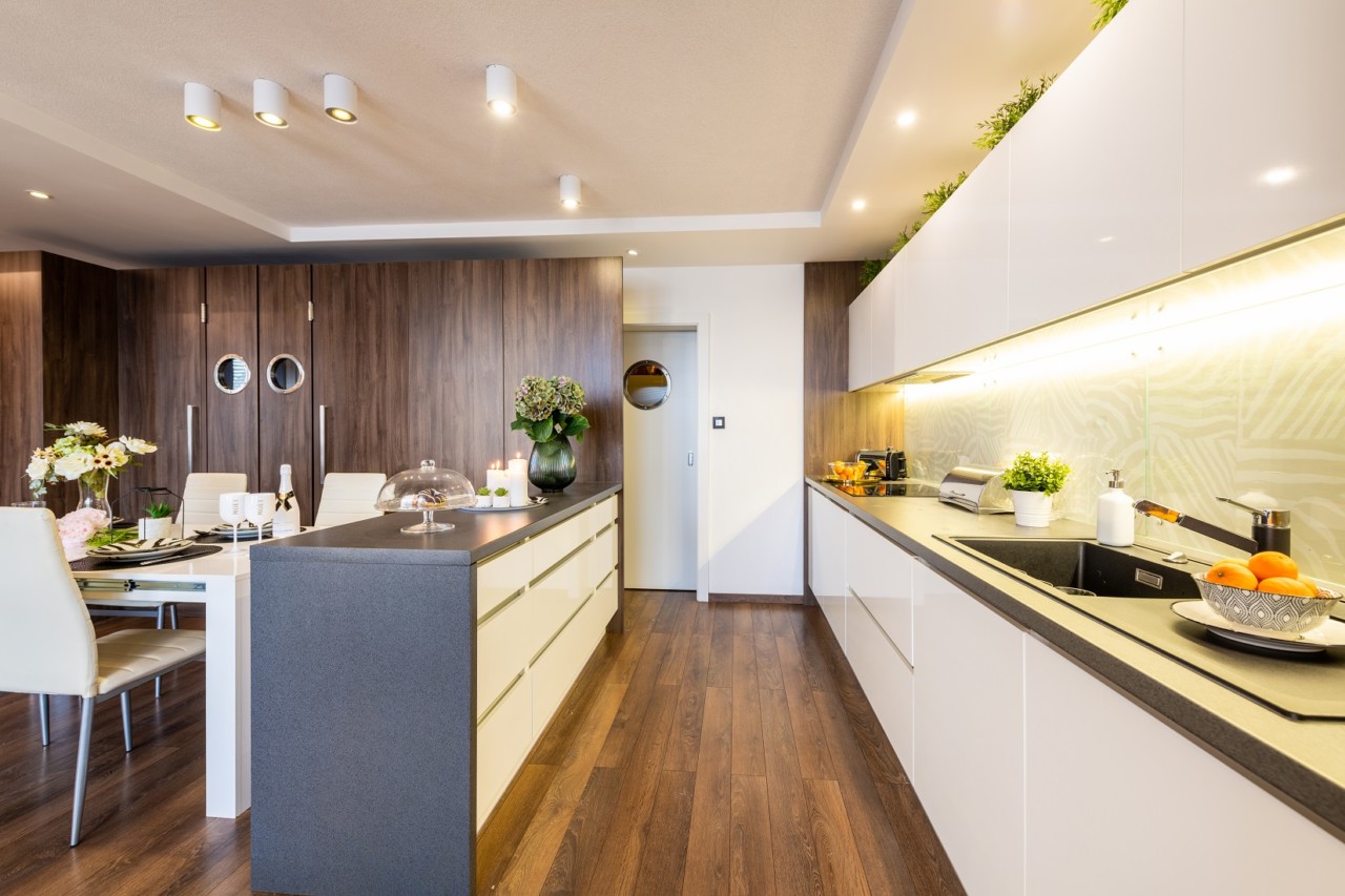 Čistý dizajn kuchyne a drevené obklady