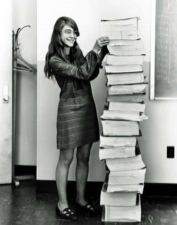 Len 29 ročná vedkyňa z NASA sa stala zodpovednou za letecký palubný softvér počítačov Apollo 11. Operačný systém, pri ktorom stojí na fotografii, zostavili spolu s kolegom a dopomohli tak úspešnému pristátiu na Mesiaci.