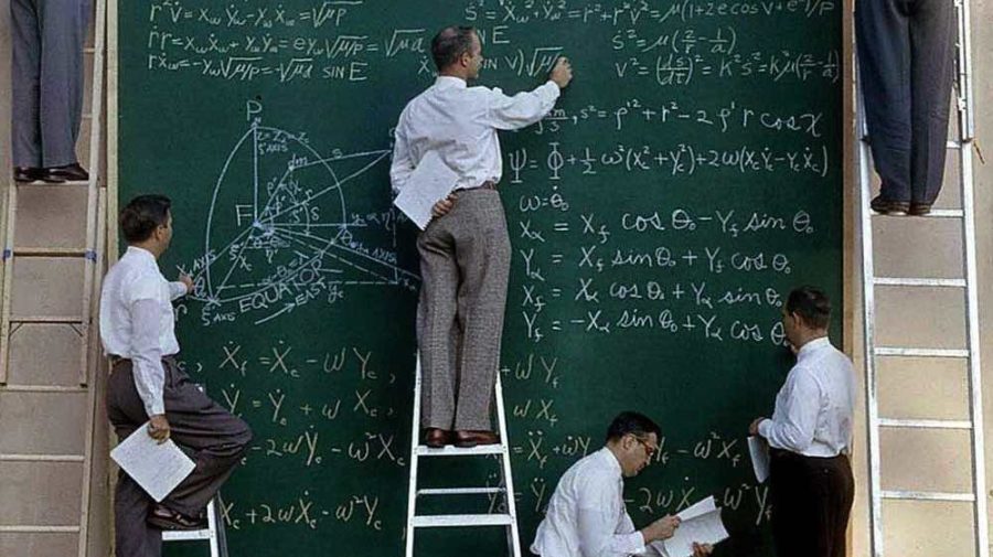 Vedci z NASA pri tabuli výpočtov v roku 1961