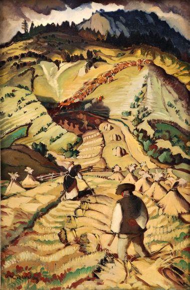 Plátno skrýva všetko, čím bol Martin Benka charakteristický. Výjav páru na žatve je poňatý modernistickým štýlom s prísnou pyramídovou kompozíciou zvládnutou Benkovou majstrovskou olejovou technikou.