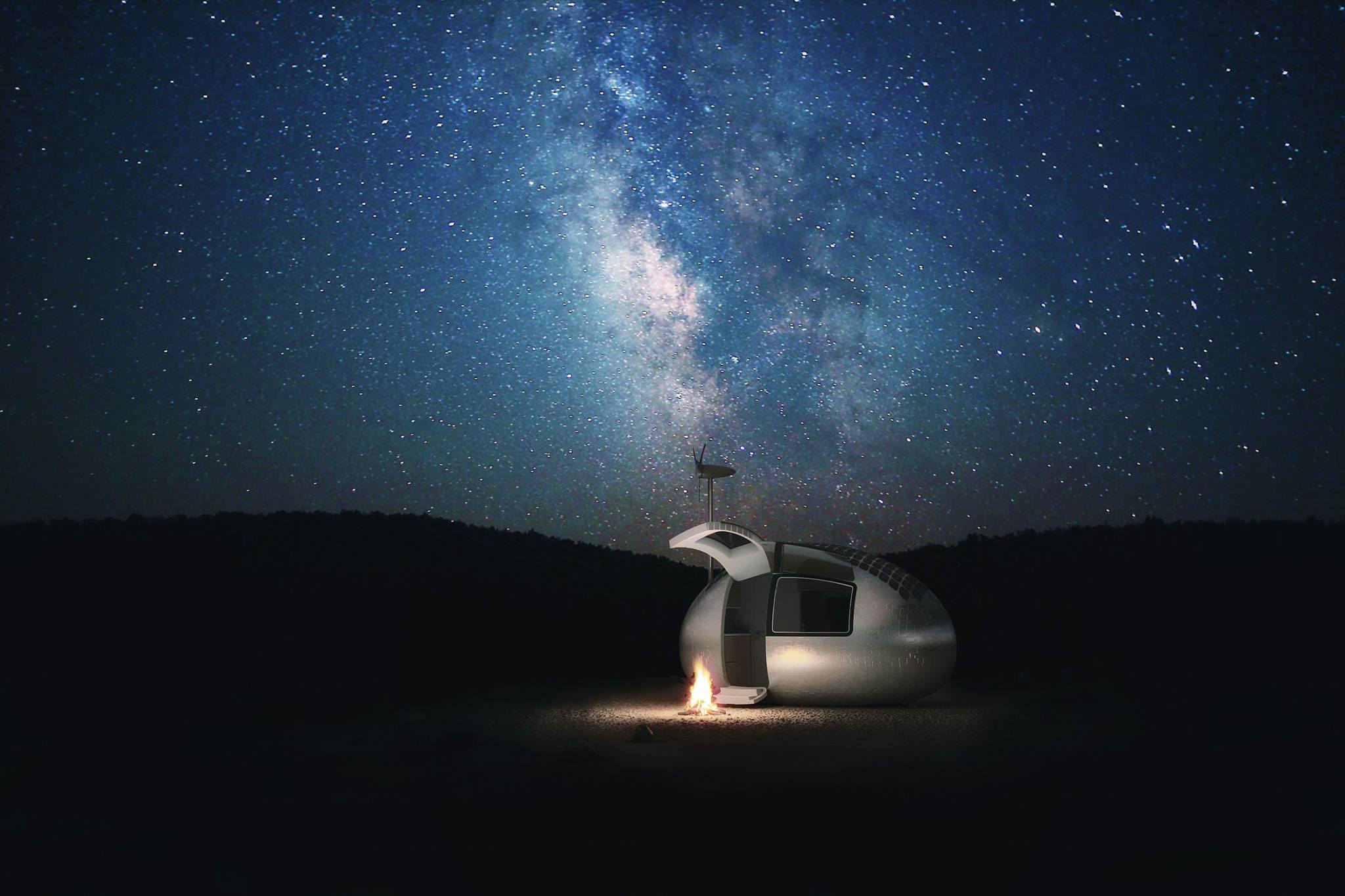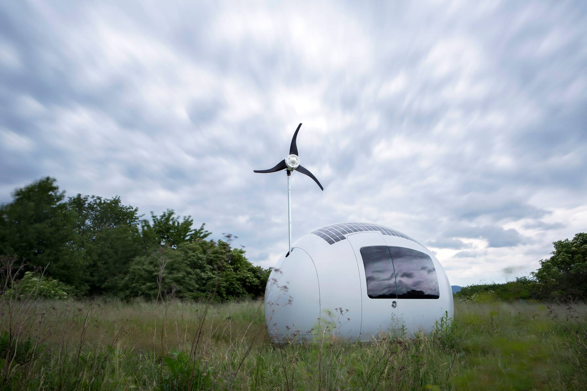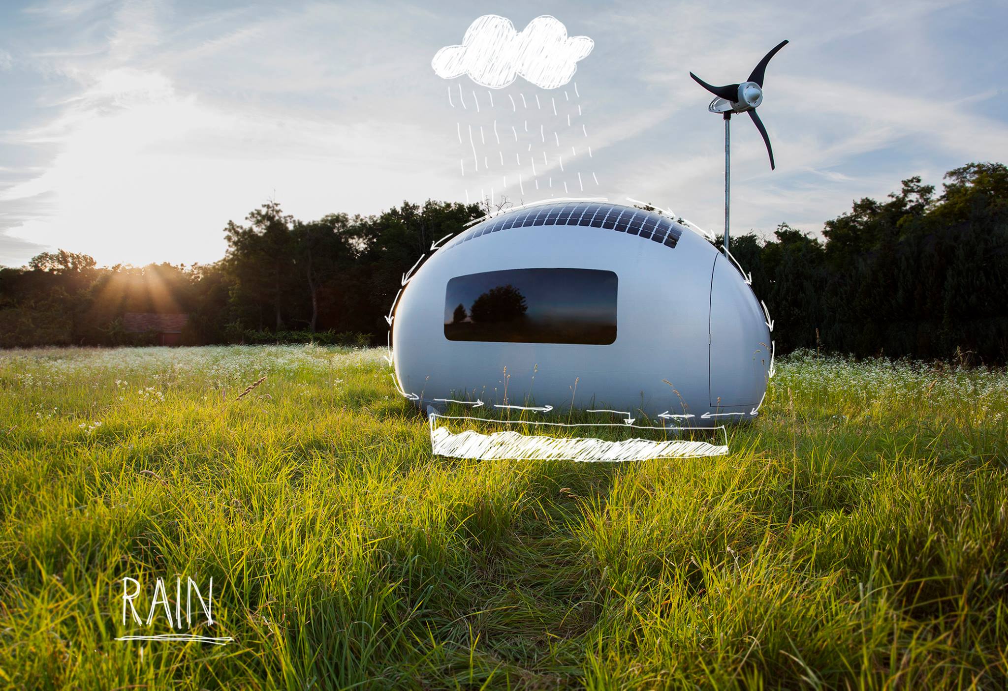 Kapsula má totiž solárny panel, malú veternú turbínu a systém na zber a filtráciu dažďovej vody. Navyše, ak ju umiestniš pri jazere alebo inom zdroji vody, kapsula ju dokáže načerpať a prefiltrovať.
