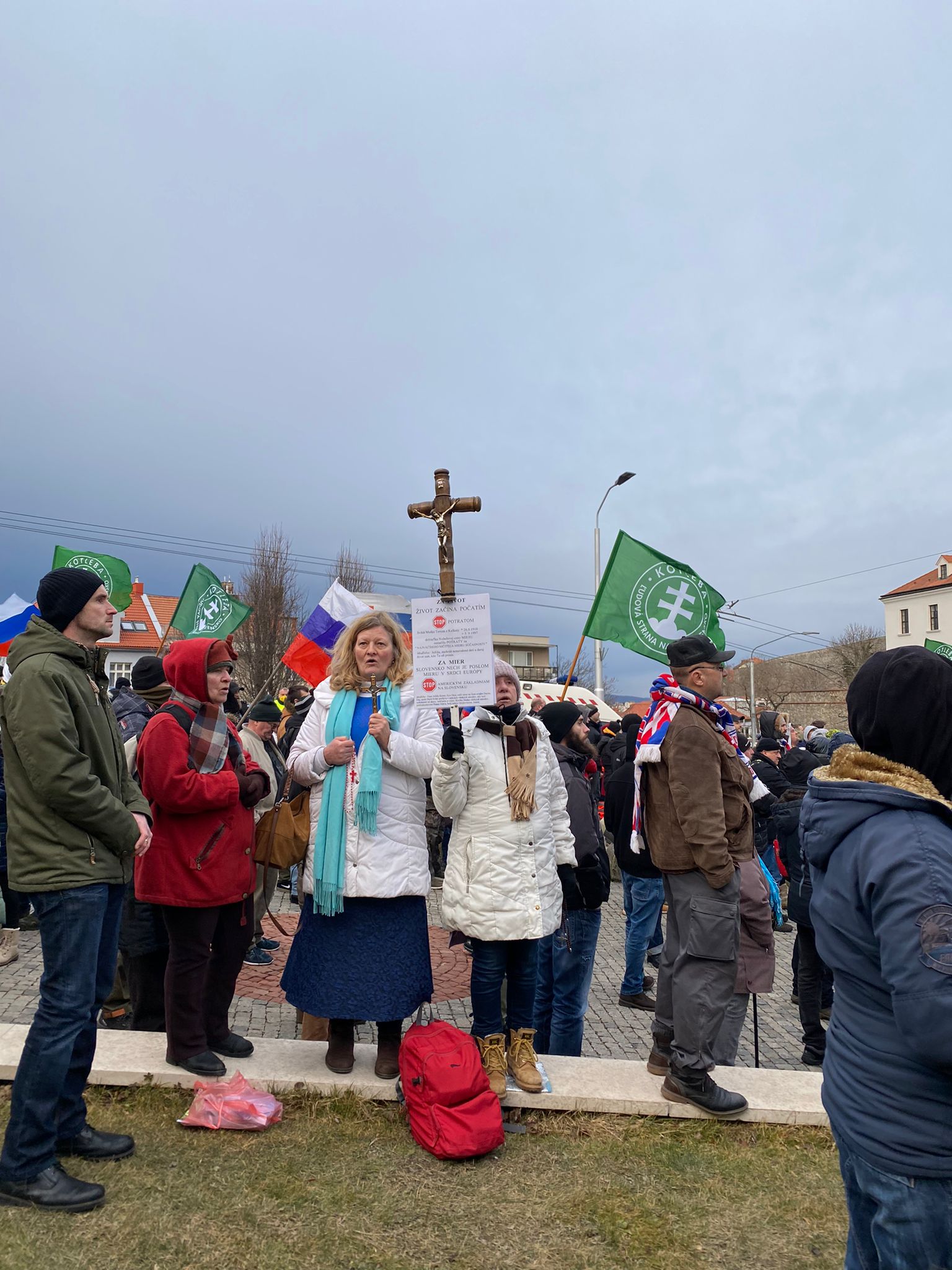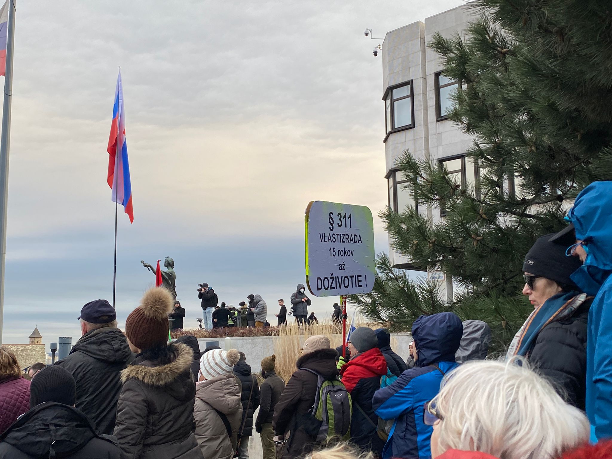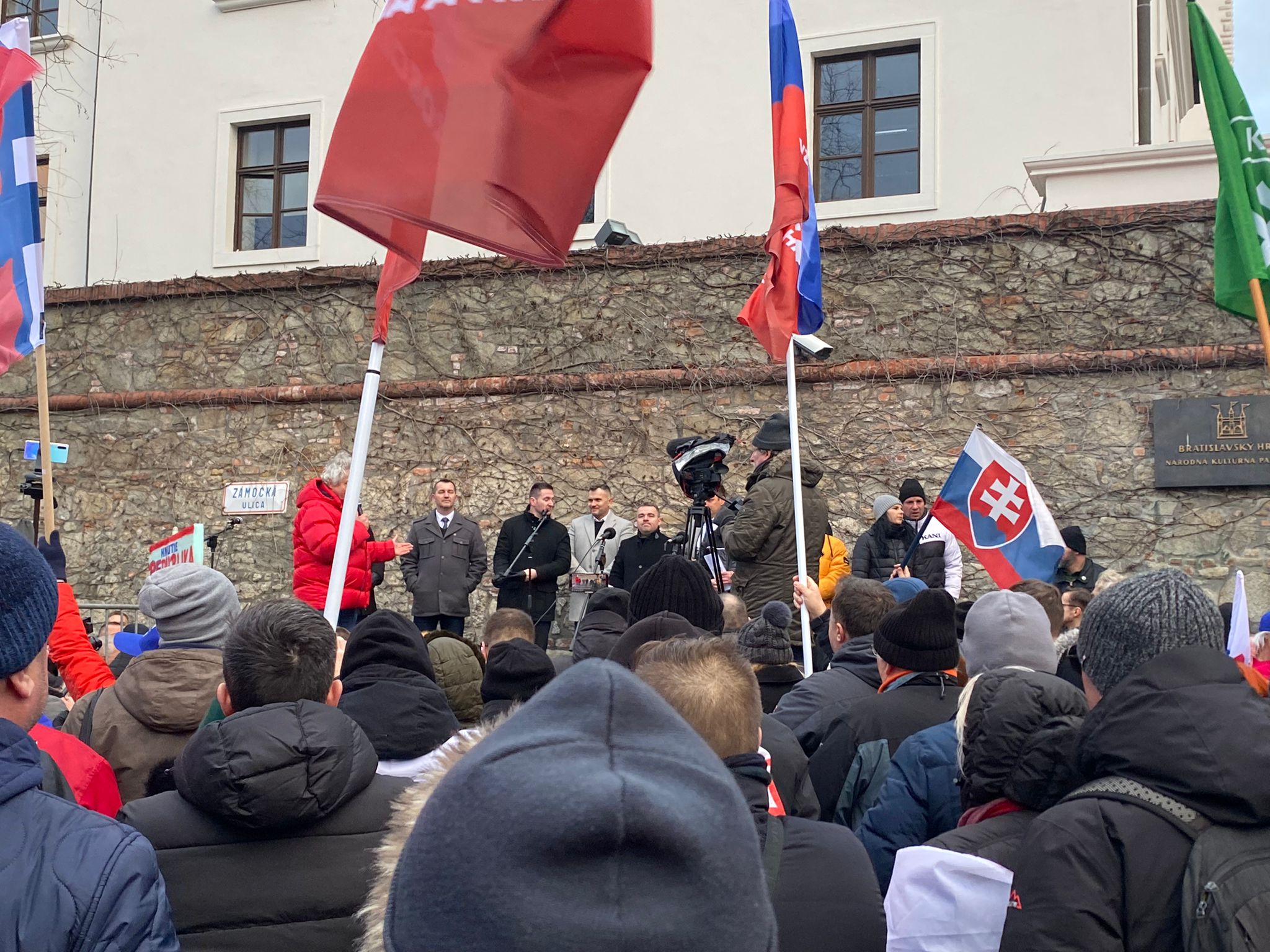 Pred demonštrujúcimi vystúpil podpredseda hnutia Republika Milan Mazurek. Dav počas jeho prejavu skanduje: „Jaro, poď von!“ či „vlastizrada“.