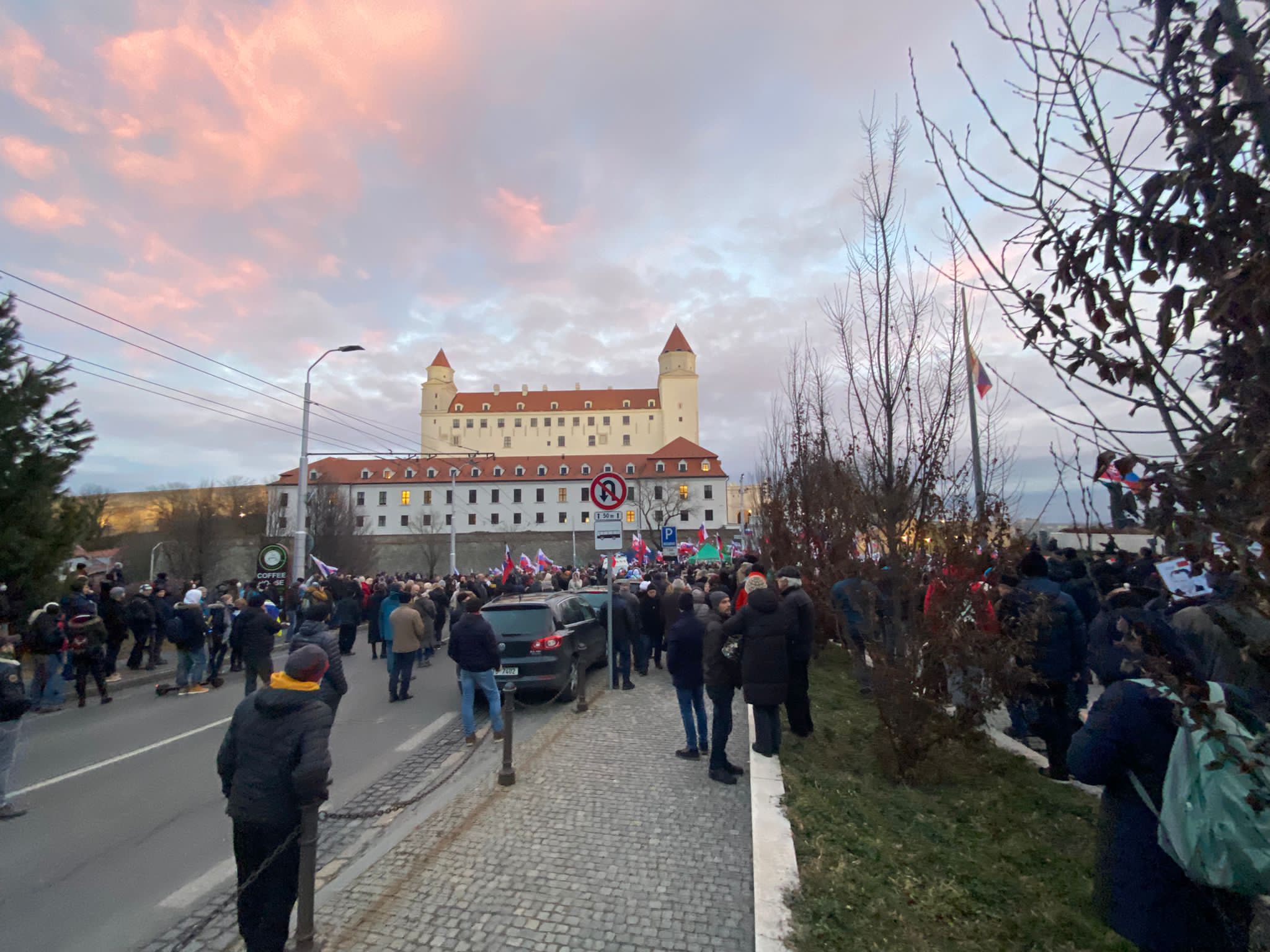 Pred budovou NR SR protestuje proti obrannej dohode s USA približne 3-tisíc ľudí. Na situáciu dohliada polícia.