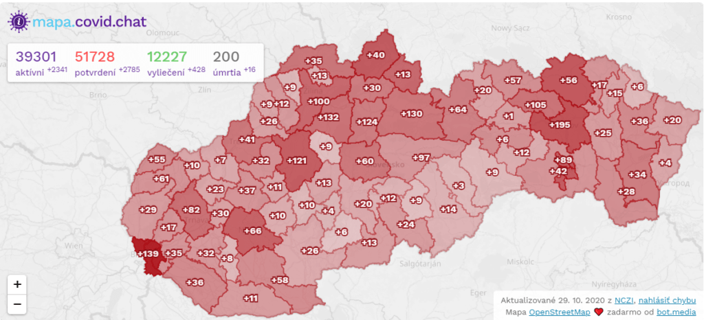 - Žilinský kraj v posledných dňoch zaznamenal nižšie počty pozitívnych prípadov, no naďalej zostáva najviac postihnutým krajom