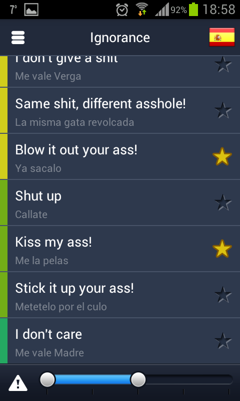 Je úplne jasné, že cudzie slová, ktoré si človek najrýchlejšie zapamätá sú vulgarizmy. Vďaka Push to Swear už ale nebudeš potrebovať slovníky. Appka ti preloží takmer každú nadávku, ktorá ti napadne z hociktorého do iného z vybraných jazykov. Push to Swear ti tiež umožňuje vybrať si vhodnú nadávku od tých slabších a menej urážlivých až po tie, po ktorých zostane adresát vulgarizmu v slzách. Aplikácia si zapamätá nadávky, ktoré si cez ňu už hľadal a dovolí ti označiť si tie, ktoré sa ti najviac zapáčili a tak sa k nim znovu môžeš vrátiť.