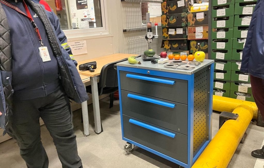 V rámci návštevy predajní sme stihli navštíviť aj najmenší sklad v Krakowe. Nespočetné množstvo potravín prechádza kontrolou kvality. Ukázali nám, že kontrola sa vykonáva pomocou rôznych nástrojov. Napríklad merajú veľkosti mandarínok, jabĺk a podobne.