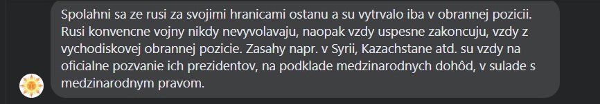 „Vojnoví štváči. Rusko je na vlastnom území a iba v obranných pozíciách s obrannými zbraňami, Rusko nikdy neútočí,“ takéto vety Slovákov sa neustále objavovali v komentároch na internete.