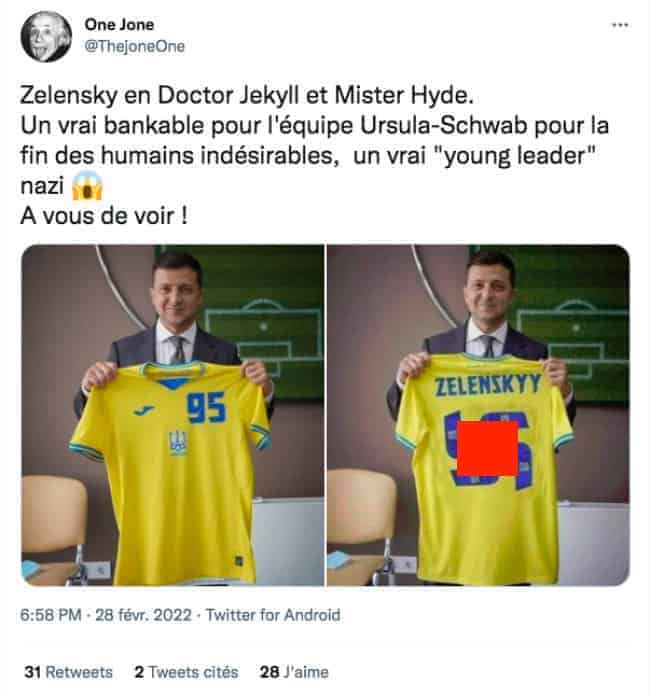 Možno si aj ty videl fotografiu, ako ukrajinský prezident Volodymyr Zelenskyj drží ukrajinský dres s hákovým krížom, čiže jasný dôkaz, že je fašista – táto fotka sa stala veľmi obľúbenou aj u nás.