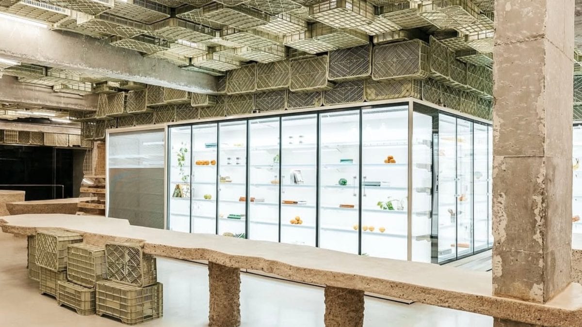 Plastové debny neslúžia len ako dekorácia. Ako uvádza portál Dezeen, architekti do nich ukryli LED osvetlenie, ventilačné rozvody aj systém zberu dažďovej vody. Vďaka tomu strop funguje ako technický plášť a zároveň ako signál k téme recyklácie a cirkulárnej ekonomiky – niečo, s čím sa pri bežnom nákupe potravín stretneš len zriedka.