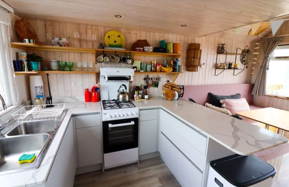 Chata za viac ako pol milióna libier disponuje solárnymi panelmi a zmestí sa do nej až 6 ľudí. Okrem iného je v chate plne vybavená kuchyňu so vstavanou chladničkou a mrazničkou. Nechýbajú tu ani dve terasy. Hoci ide o plusy, na chate chýba toaleta.