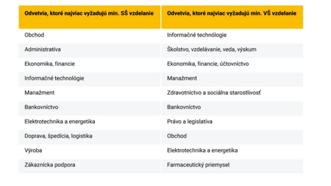 - Prieskumy portálu Profesia ukazujú, že iba 9% pracovných ponúk vyžaduje vysokoškolské vzdelanie II. stupňa
