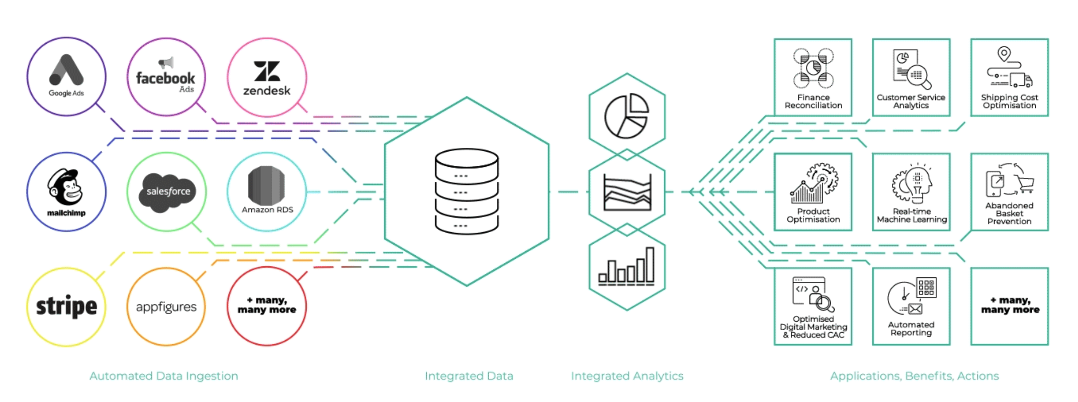 Dáta zahŕňajú informácie z online platforiem, z objednávok, výroby, distribúcie a mnohého iného. Vďaka rozhodnutiam, ktoré vzišli z analýz zozbieraných dát, je pravdepodobné, že sa zvýši zisk firmy, pričom sa znížia jej náklady. V neposlednom rade sa vďaka integrovanej dátovej analytike predchádza aj podvodom.