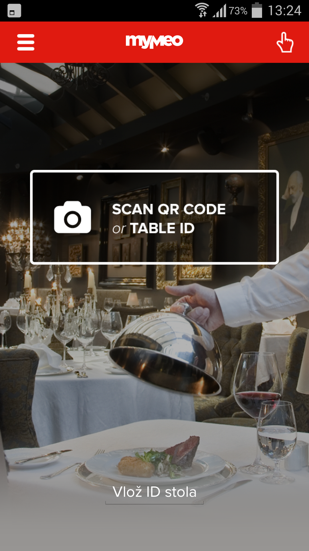 Po stiahnutí appky – v mojom prípade na Android (sorry iOS), som sa pustil do skúmania jej funkcionality. Poďme sa teda pozrieť, či myMeo ulahodí nie len nášmu bruchu, ale aj oku. Po spustení appky sa zobrazí jednoduchý prehľadný screen, pomocou ktorého si môžete nasnímať QR kód alebo ID stola, za ktorým práve sedíte. Tým si appka hneď identifikuje, kde sa vlastne nachádzate a otvorí menúčko danej reštaurácie a vy si rovno vyberáte z aktuálneho jedálníčka.