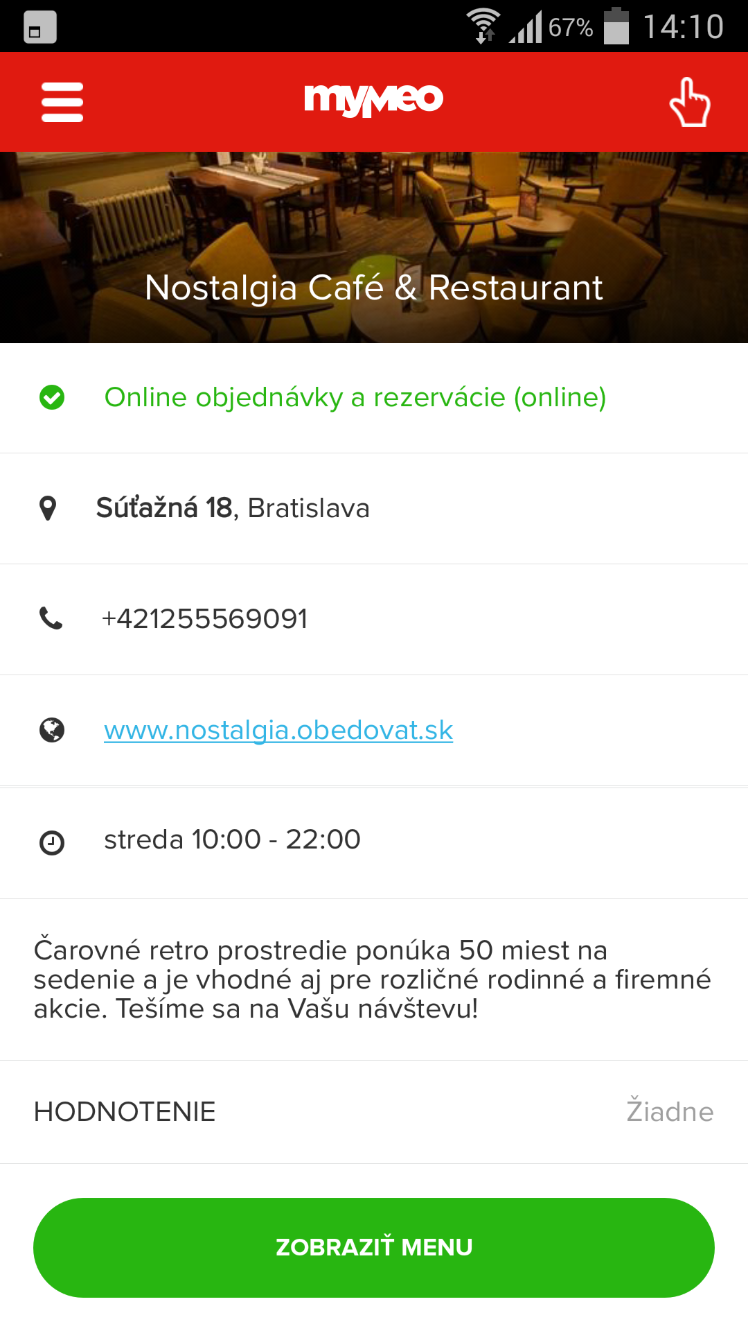 Stále ta istá pesnička dookola. Máme peknú prírodu? Máme. Máme pekné hory? Máme. Čo však nemáme, sú kvalitné služby. Tento rpoblém šikovne obišlo myMeo tým, že skombinovalo štipku technológie a rozumu. Appka myMeo slúži na rýchle objednávanie a rezervovanie v reštauráciách. Absolútne vítaný krok, lebo niekedy to je ozaj na zbláznenie, hlavne keď sa chce človek nebodaj posťažovať. Na Slovensku akurát tak na Lampárni! V appke je priamo integrovaná aj možnosť hodnotenia reštaurácie – predpokladajme, že dokonca ani na Slovensku, nie je majiteľom úplne jedno aké majú ich reštaurácie povesť.
