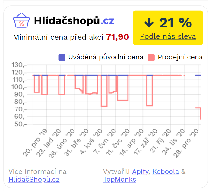 - „Hlídač Shopů“ ti zobrazí pôvodnú cenu produktu a jej vývoj v čase, takže vďaka nemu ľahko spoznáš, či nakupuješ so zľavou alebo nie