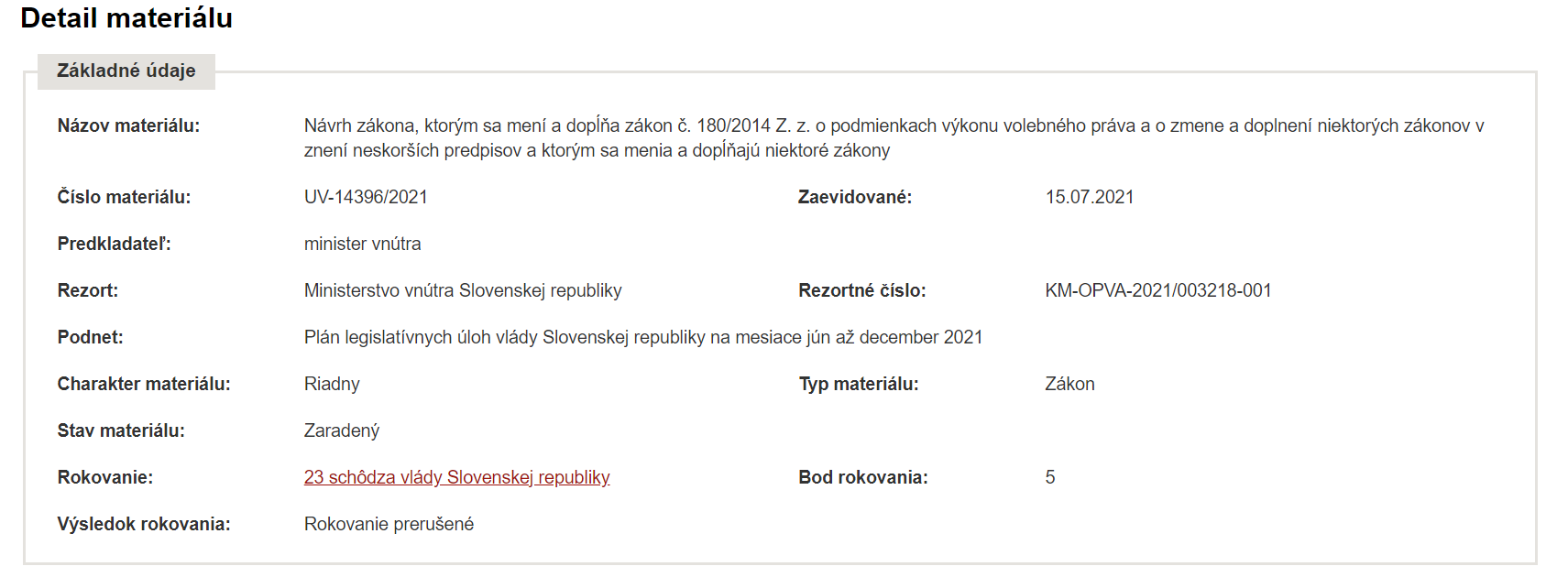 Návrh zákona, ktorým sa mení a dopĺňa zákon č. 180/2014 Z. z. o podmienkach výkonu volebného práva a o zmene a doplnení niektorých zákonov v znení neskorších predpisov a ktorým sa menia a dopĺňajú niektoré zákony, bol zaevidovaný 15.7. 2021 a jeho súčasťou je aj odsek, ktorému sa vo svojom príspevku venuje poslanec Pčolinský.