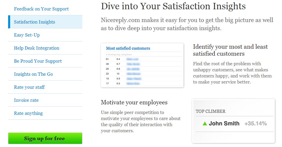 Všeky tieto feedback landing pages môžu byť modifikované podľa predstáv firmy. Ako manažér si môžete potom pozerať štatistiky odpovedí vaších zamestnancov. Nicereply nemusíte pripojiť iba k emailom. Rovnako ho môžete používať s vašimi systémami zákazníckej podpory ako sú Zendesk, Mojo Helpdesk a podobné.
