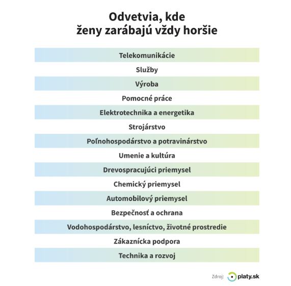 Vždy horšie zárobky dosahujú ženy v oblasti telekomunikácií, služieb, výroby, poľnohospodárstva a potravinárstva, ale paradoxne aj v umení a kultúre.